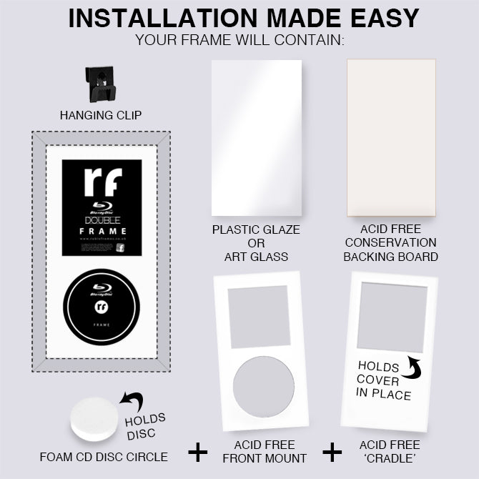 The cover is securely held in an internal acid-free Cradle Mount to preserve its condition. The disc is neatly held in place with a foam circle for a clean, professional finish—no glue, no tape, no mess.